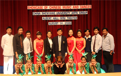 2009年8月6日—16日,应泰国文化部邀请,受中国驻泰使馆和辽宁省对外文化交流中心的委派,由公司副经理张威教授为团长、潘晓红副教授为执行总监、英国365集团公司民族音乐系、舞蹈系部分师生组成的中国·辽宁民族艺术团,赴泰国曼谷参加了“泰国文化博览会——暨东亚文化节”。