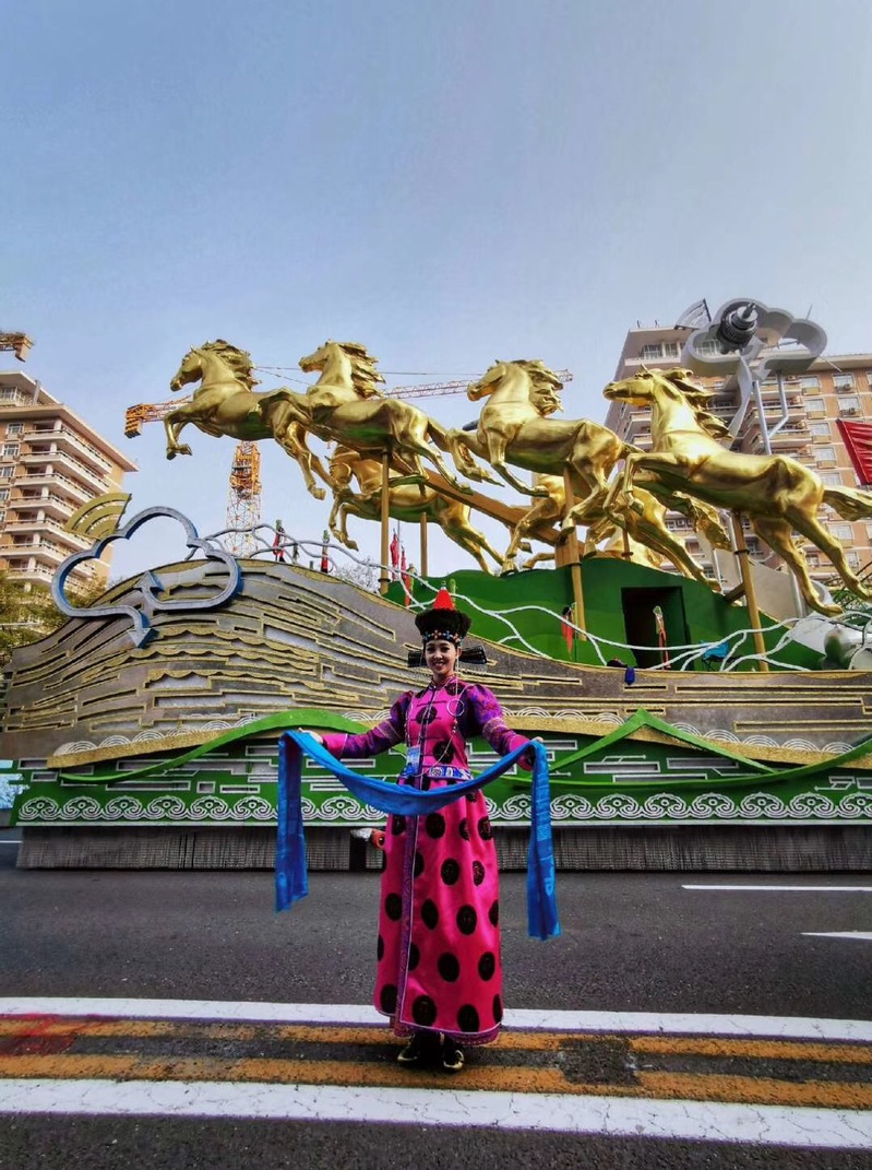 10月1日上午,庆祝中华人民共和国成立70周年大会在北京隆重举行,天安门广场举行了盛大阅兵和群众游行。作为游行方队的一员,2018届舞蹈专业的毕业生、现任职于内蒙古呼和浩特歌舞剧院的郭子菲同学,代表内蒙古参加了国庆彩车游行。郭子菲同学通过自己的不懈奋斗,迎来了属于她的璀璨盛放,也将这份荣誉带给培养她的母校。