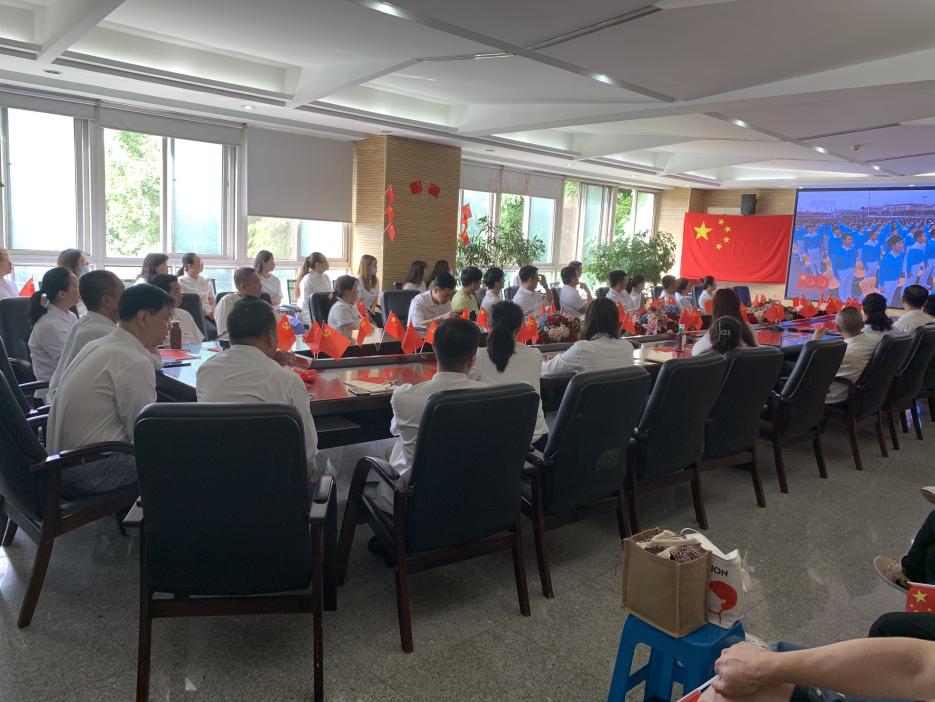 7月1日上午8时,公司党总支组织全体党员、各部门主任、副主任及部分员工代表共89人,于307会议室集体收看庆祝中国共产党成立100周年大会直播。